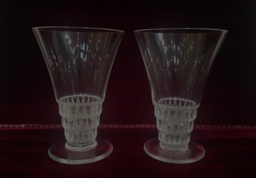 年代:1930年 寸法: H 8.5cm W 5.8cm Circa: 1930 Dimensions: H 8.5cm W 5.8cm 残:2客 Two Available 三代目マリークロード・ラリックの復刻版(1977年~)も1客ございます。 サイズは少々小ぶりの、H 7.5cm W 5cm でございます。